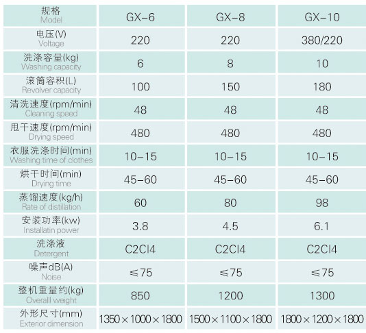全自動(dòng)干洗機(jī)技術(shù)參數(shù)